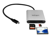 Access data on a wide range of memory cards using your USB-C enabled mobile device or computer. Ideal for creative professionals, this multi-card reader/writer saves you time and helps you work more efficiently when working with a wide variety of flash media, letting you quickly transfer and back-up files. It supports SD (Secure Digital), microSD, and CompactFlash cards, and connects to the USB-C port on your tablet, smartphone, laptop or desktop computer. The multi-card reader makes it easy to offload photos, video, and other files you've saved on your memory cards, providing fast access through USB 3.0 (also known as USB 3.1 Gen 1) with file transfer speeds up to 5Gbps. The reader increases workflow efficiency for creative professionals such as photographers and videographers. It helps to increase your productivity by saving you time when offloading raw images or editing video and photos, and backing up files. The card reader is also backward compatible with USB 2.0, ensuring compatibility with older systems. This multi-card flash reader gives you the flexibility and convenience of accessing multiple types of memory cards. It gives you read and write access to virtually any format of flash media card from your digital cameras or video cameras, with support for SD, SDHC (Secure Digital High Capacity), SDXC (Secure Digital Extended Capacity), microSD and CompactFlash cards. You can easily review files or back up and archive data from your smartphone, tablet, laptop or other USB Type-C enabled device. The three memory card slots for SD, microSD, and CompactFlash cards are all hot swappable, for additional flexbility. The card reader gives you a portable solution for accessing a wide variety of memory cards anywhere you go. With its small form factor, it fits easily into your pocket, backpack, briefcase or laptop bag. The integrated USB Type-C cable lets you quickly connect to a computer or pack it up quickly when you're done using it, without having to carry an additional cable with you. The card reader is powered directly from the USB port and supports plug-and-play installation, with no driver or software installation required.