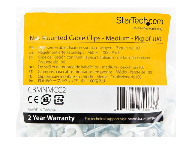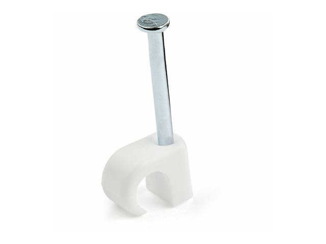 Startech 100 Pack Cable Clips with Nail, Reusable, Nail-in Clamps, Wire Holding Clips, CAT5/CAT6 Ethernet Cord/AV/Coax Cable Fasteners, Brick/Drywall Mounting Cable Tacks, White, TAA