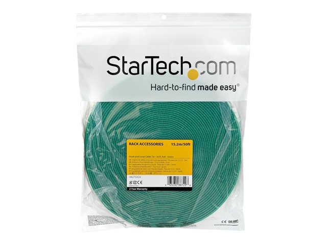 Startech 50ft Hook and Loop Roll, Cut-to-Size Reusable Cable Ties, Bulk Industrial Wire Fastener Tape / Adjustable Fabric Wraps Green / Resuable Self Gripping Cable Management Straps