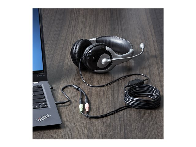 Headset splitter - 4-pole mini jack male to mini jack female - 20 cm - black - for P/N: DK30A2DH, DK30CHDDPPD, DK30CHDPPDUE, MST30C2HDPPD, USB3SMDOCK4K, USB3VDOCKD
