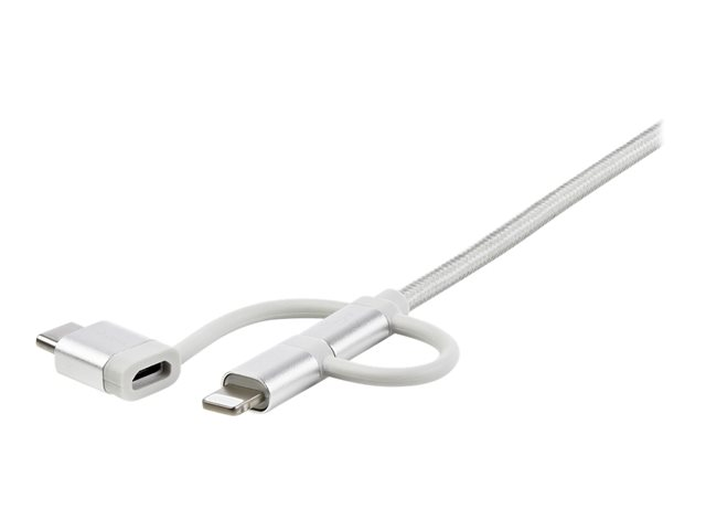 3.3 ft / 1m - Lightning / USB-C / Micro-USB - Braided - MFi Certified - USB 2.0 - 3 in 1 Charging (LTCUB1MGR) - USB cable - USB (M) to Micro-USB Type B, Lightning, USB-C (M) - 1 m - silver