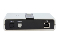 Turn your laptop or desktop computer into a 7.1-channel home theater-ready sound system. This versatile External USB Sound Card/Audio Adapter offers a high quality solution for upgrading desktop or laptop sound. Providing a robust USB audio experience, the USB sound card connects to a host computer through a single USB 2.0 connection, to deliver impressive external audio capability that can instantly be swapped between systems, without having to open the computer case for installation. Supporting analog and digital audio for 2 to 7.1 channel audio applications, the external USB sound card provides a cost-saving upgrade from built-in/on-board sound that turns desktop/laptop sound into a home theater-ready audio solution. The external USB sound card features easy-to-use volume control and two external microphone inputs - a convenient solution for any audio application requiring high quality sound with multi-input capability with support for 44.1 KHz and 48 KHz sampling rates for analog playback and recording or 48 KHz for SPDIF. A more than suitable solution for home theater, gaming or multi-media presentations, the External USB Sound Card is easy to install with plug and play support in Windows XP and Windows Vista operating systems. Note: The audio adapter's SPDIF optical pass-through port supports two-channel audio, this port does not support 5.1 or 7.1 audio.