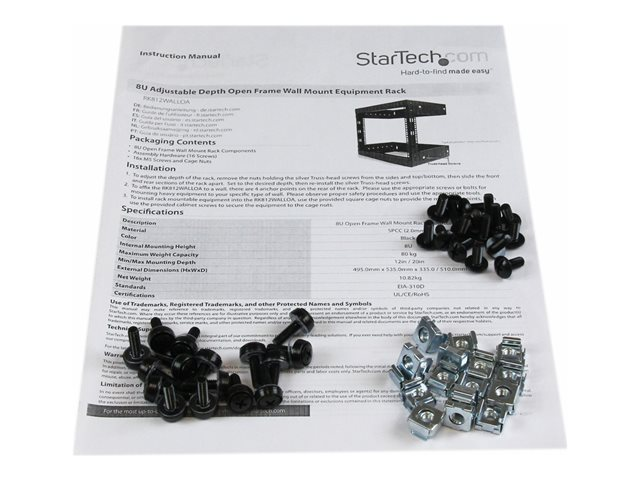 12" Deep 2 Post Open Frame Server Room Rack for Data/AV/IT/Computer Equipment/Patch Panel with Cage Nuts & Screws 135lb Capacity, Black (RK812WALLO) - Rack - black - 8U - 19" - for P/N: CABCAGENUTS6, CABSCREWM52, CABSCREWSM6, CABSCRWM520, CABSCRWM620, CABSCRWS1224