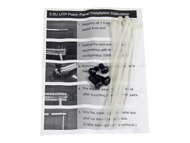 Organize up to 24 Cat5e patch cables using only 0.5U of rack space. The PANELHU24 Rack Mount Cat5e patch panel condenses 24 ports into a 0.5U panel, making it an ideal solution for smaller installations. Color coded for both T568A and T568B wiring, this network patch panel provides the perfect solution for any voice or LAN application and offers dual type IDC termination. For convenience, the port numbers are clearly marked on the front of each RJ45 port, offering a quick and easy way to identify cable runs.
