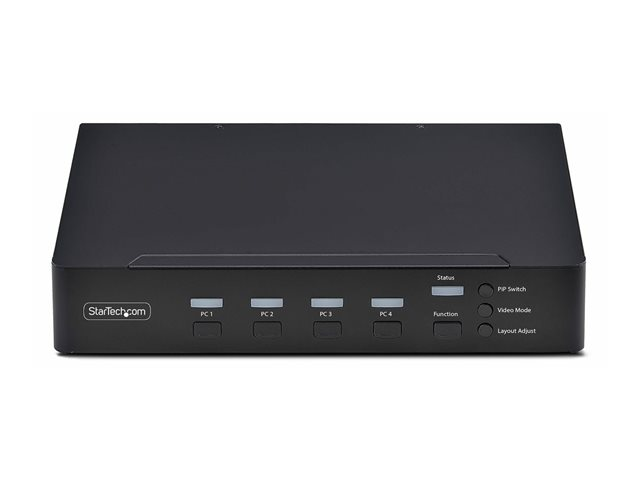 The StarTech.com P4AD122M-KVM-SWITCH is a versatile KVM switch that enhances productivity by allowing seamless switching between devices. With support for up to 3840 x 2160 resolution at 60 Hz, it ensures crisp and clear visuals, making it ideal for demanding tasks. This desktop switch features a robust aluminum and steel housing, offering durability while maintaining an elegant design. Equipped with multiple interface options including USB 3.2 Gen 1, DisplayPort, HDMI, and audio connections, the P4AD122M-KVM-SWITCH caters to a range of device setups. Users can enjoy convenient features like mouse roaming and a Picture in Picture function, allowing for efficient multitasking. Its operating temperature range and compliance with various standards ensure reliability in diverse environments.