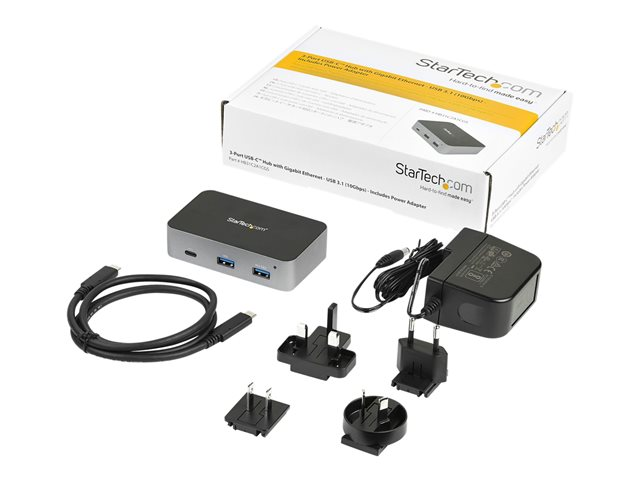 Startech 3 Port USB C 3.1 Gen 2 Hub with Ethernet Adapter, 10Gbps USB Type C to 2x USB-A & 1x USB-C Ports, USB Hub w/ BC 1.2 Phone Fast Charging, Superspeed 10Gbps USB C Hub with GbE