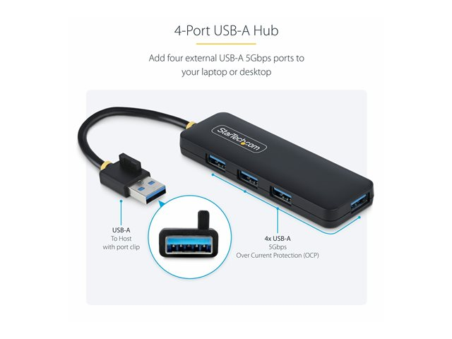 Startech 4-Port USB-A Hub, 5Gbps, Bus Powered, Small Travel Mini Hub