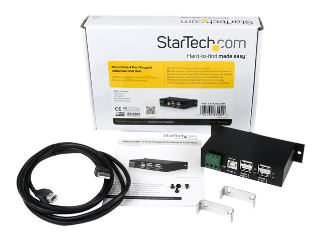 4 Port Rugged Industrial USB 2.0 Hub - Hub - 4 x USB 2.0 - DIN rail mountable - DC power - for P/N: ITB20D3250, MSDREADU2OTG, USB2HAB15, USB2HAB30AC, USB2HAB50AC, USB2HABM1, USB2HABM6RA