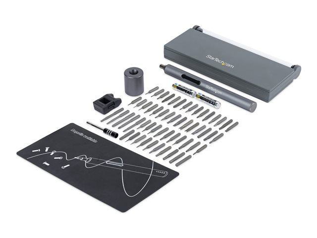 This cordless screwdriver is the ideal tool to dismantle and reassemble electronic devices during repairs. The battery powered driver set includes a precision electric screwdriver, 55 micro bits, a magnetizer/demagnetizer and a magnetic work pad, housed in a durable hard case. A complete range of bits ensures compatibility with most major brands of smartphones, tablets and laptops including but not limited to Apple iPhones, iPads, Macbooks, Samsung Galaxy, HP, Acer Chromebooks and Lenovo ThinkPads.